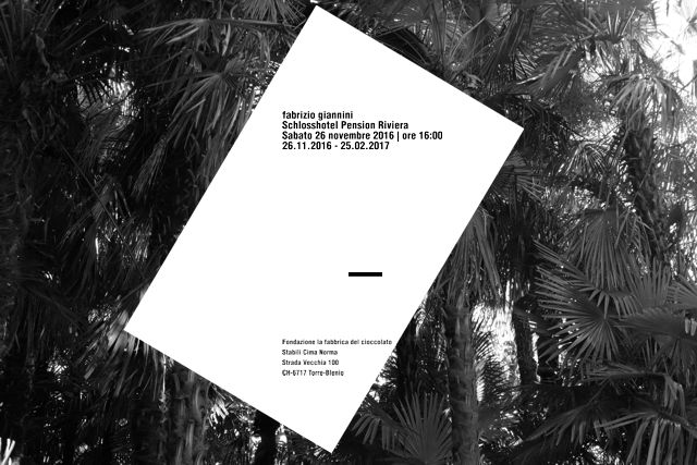 Nell'ambito del progetto curatoriale foreignness, la fondazione La Fabbrica del Cioccolato inaugura il 26 novembre “Schlosshotel Pension Riviera”, un’esposizione di Fabrizio Giannini. Il titolo della mostra è emblematico di una certa idea di esotismo che invade il Ticino nel secolo scorso e che ne reiventa il paesaggio con l’immaginazione delle genti del Sud. Il paesaggio diventa così il luogo di un continuo attraversamento e di un nuovo regime di visibilità che viene ricomposto con elementi tanto estranei quanto intenzionali. Tale incorporazione non riguarda semplicemente il comportamento, né soltanto l’essenza, ma coinvolge anche sia l’esperienza che la soggettività. Il suo lavoro si inserisce nel tema anzidetto attraverso la scelta accurata di elementi “forzati” a interagire tra di loro. A tal pro, l'artista ricorre a metodologie di accostamento e di trasposizione/sovrapposizione, esibendosi in un delicato processo di equilibrismo e di decontestualizzazione e demistificazione di fattori endogeni ed esogeni alla società, processo inteso come interazione tra natura, arte e comunicazione. Giannini sottopone natura e arte a un esercizio allo stesso tempo concettuale ed estetico, fatto di repentine incursioni, invasioni e adattamenti a un contesto in rapido movimento. Nei suoi lavori elementi entrati a far parte del contesto naturale esotico paesaggistico come componente caratteristica del Canton Ticino figurano, quali agenti invasivi ed estranei, piante dell’area mediterranea, come la palma o l’agave, tutti in perfetta ma “artificiosa” sintonia con la vegetazione autoctona che copre valli e montagne delle fasce prealpine. Giannini si spinge oltre per porre con disinvoltura e coraggio il fattore estraneo a inserirsi quale elemento a sé stante, visivamente preponderante in un contesto storico artistico, con un'ironia e una freschezza di intenti e gestualità di forte impatto. Ne nascono opere di estremo interesse per un'analisi sui rapporti tra arte nelle sue forme più estetiche e arte nelle sue forme espressive più concettuali, con evidenti analogie con il contesto sociale nel quale si muovono la cultura istituzionale e la creazione d'avanguardia, e contesti naturali nel quale si muove la società dei consumi e il territorio vittima delle conseguenze di un progresso incondizionato che ne esaspera gli equilibri. Il lavoro di Giannini è spesso anche un processo di “formattazione” e decodifica di tutti questi meccanismi della nostra società, processo che sembra essere in un qualche modo ricondotto in una dimensione virtuale di complessa matrice matematica fuoriuscita da un vortice incessante di algoritmi informatici che l’artista in un’impressionante video installazione parte della mostra, ci ripropone in termini di assordante e ripetitiva nenia sintetica ad inscenare una drammaturgia estetica concettuale di fortissimo impatto emotivo.